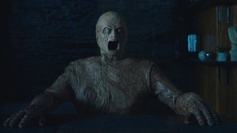 La decisión artística se merece sus laureles, pero el factor estelar de Oddity es otro. El gólem de madera que Darcy lleva a la casa de su hermana fallecida se lleva toda la atención, y cada uno de sus momentos en pantalla es sublime. Sentado en una esquina de la sala principal con la boca abierta de par en par, la original construcción de su estética y funcionamiento lo vuelven un enemigo impredecible, siendo su sola presencia inerte en el plano un gran contribuyente a la incomodidad visual que McCarthy quiere lograr.